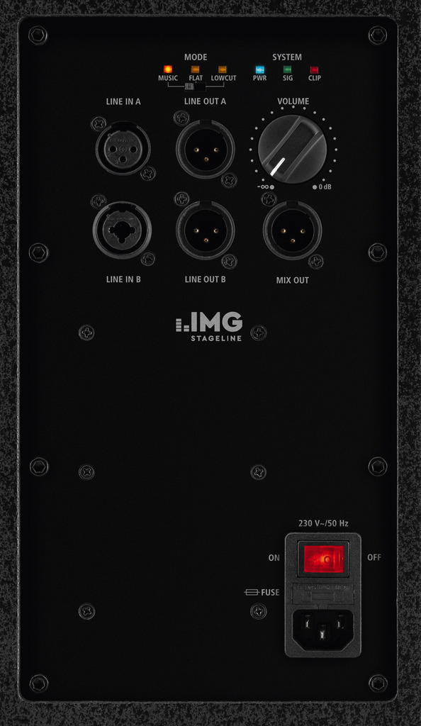 - LOW CUT (mit Hochpass für Einsatz mit zusätzlichem Subwoofer)
