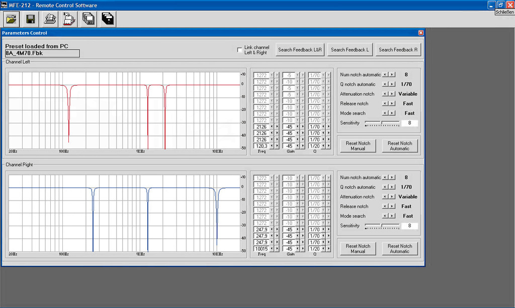 - Wahlweise ständige Signalüberwachung (Auto Notch) oder manuelles Setzen der benötigten Filter (Manual Notch)