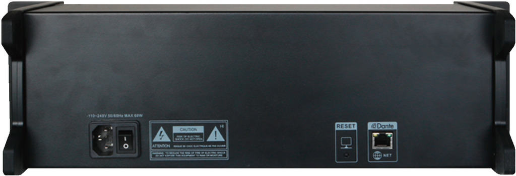 - 4 Dante®-Eingänge, 4 Dante®-Ausgänge