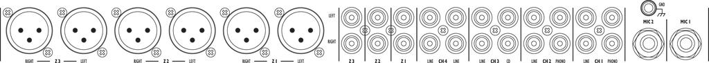 - Zonenausgänge mit 3-fach-Klangregelung, LED-Pegelanzeige der Stereosumme, Balanceregler, Vorhören (PFL) und Mono/Stereo-Umschaltung