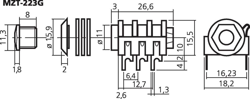 6,3-mm-Stereo-Klinken-Einbaubuchse