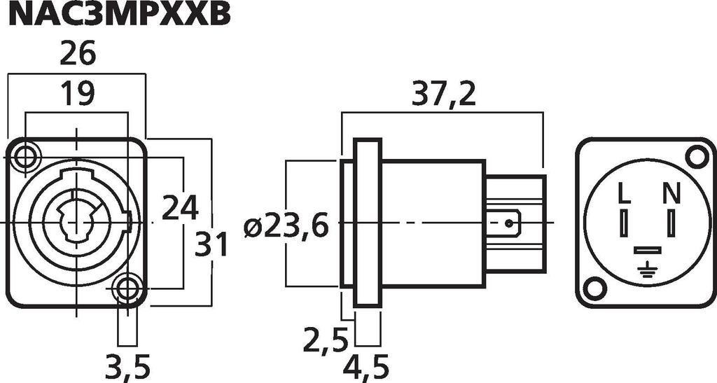 - Für den Netzanschluss bis ˜ 250 V/20 A