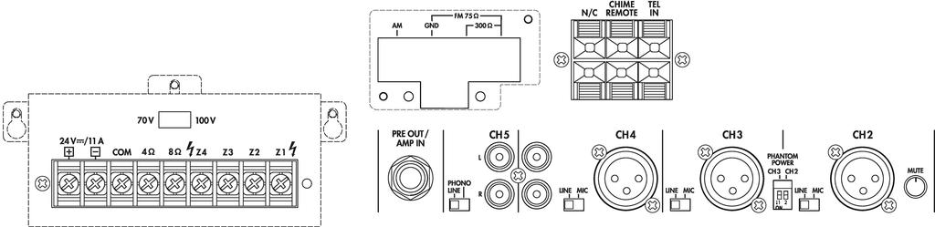 Im Betrieb liegt an den Lautsprecheranschlüssen berührungsgefährliche Spannung bis 100 V an. Alle Anschlüsse nur bei ausgeschaltetem Verstärker vornehmen bzw. verändern.