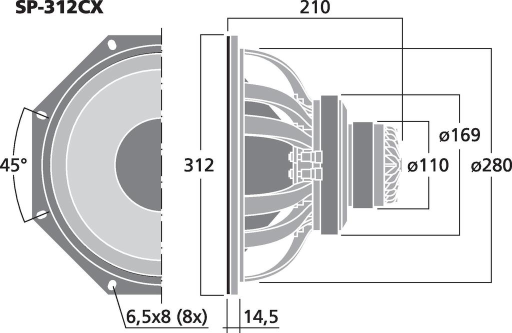 - Hoch belastbarer 30-cm-PA-Tieftöner (12") mit hohem Wirkungsgrad