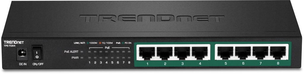- 8 Ports (RJ45) mit je 10/100/1000/2000 Mbps, 8 PoE-/PoE+-Ports