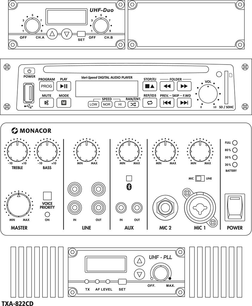 - Transportables Verstärkersystem Multi-Frequenz-Empfänger und Bluetooth