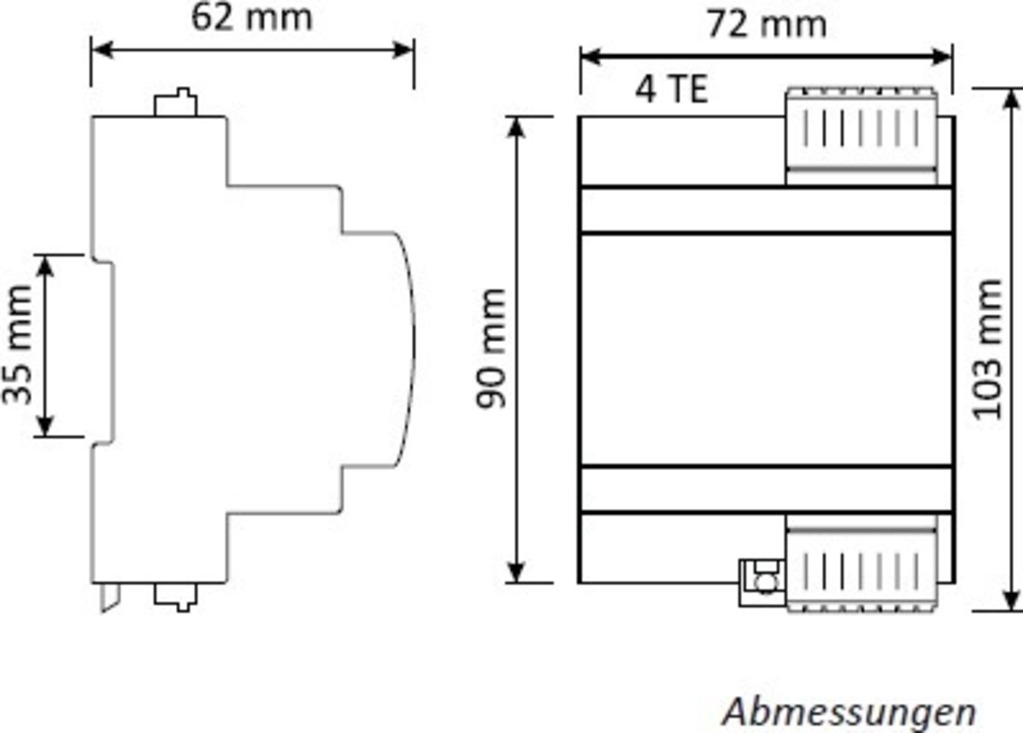 - Zum Einbau auf Hutschienen nach DIN EN 60715, 4 TE