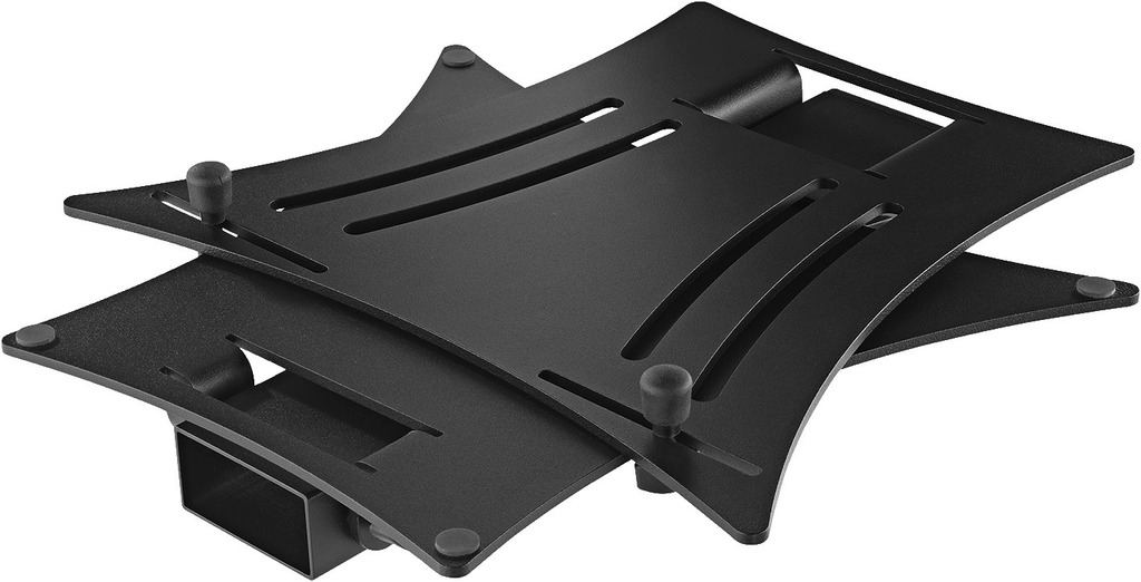 - Individuell einstellbare Anschlagstifte mit Gummikappen für die Montage von gängigen Laptop-Modellen oder Mischpulten, CD-Playern