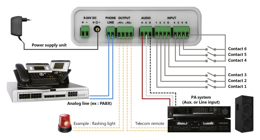 zum Anschluss als analoge AB-Nebenstelle an eine Telefonzentrale.