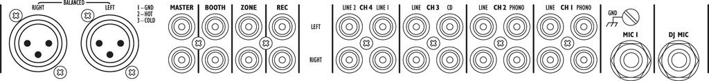 - Eingangskanäle mit Vorverstärkungsregler (Gain) und 3-fach-Klangregelung, Stereo-Eingangskanäle mit Cut-Funktion