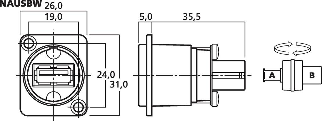 - Reversibler Adapter für Durchgangsrichtung Typ A/B oder B/A