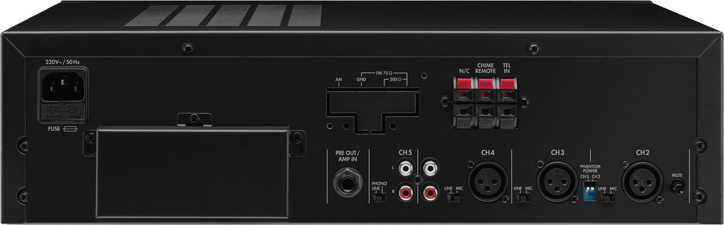 Im Betrieb liegt an den Lautsprecheranschlüssen berührungsgefährliche Spannung bis 100 V an. Alle Anschlüsse nur bei ausgeschaltetem Verstärker vornehmen bzw. verändern.