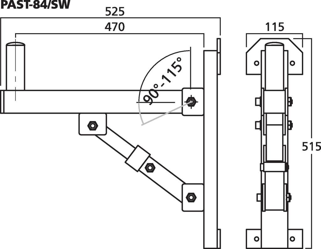 - Neigungswinkel 4-stufig einstellbar (90-115°), mit Sicherungsschraube arretierbar