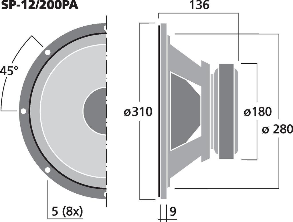 PA-Tiefmitteltöner, 200 W, 8 Ω