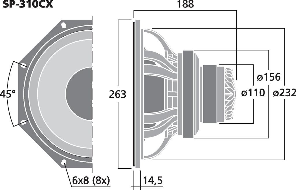 - Hoch belastbarer 25-cm-PA-Tieftöner (10") mit hohem Wirkungsgrad